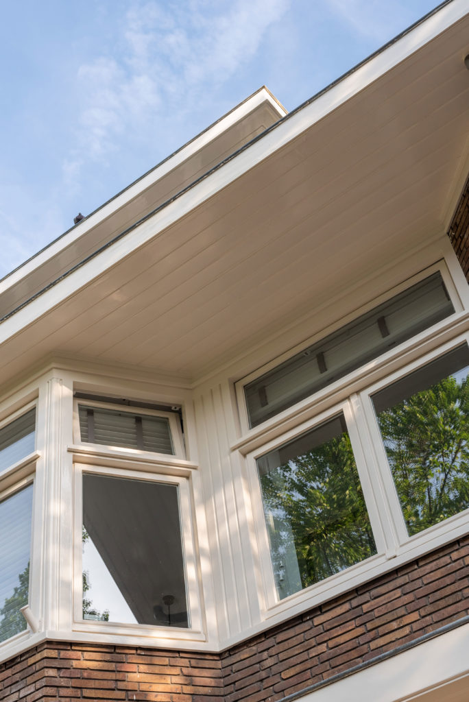 Het huis was nodig aan onderhoud toe. De voor- en achterkant moesten worden aangepakt en zo ook het schuurtje dat uit dezelfde tijd stamt als het huis. Hier zat houtrot. Dat houtrot is vakkundig gesaneerd. Ook de voordeur kreeg een nieuwe laklaag. Niet door ons, maar door de vader van de huiseigenaar. Hij zat jaren in de botenbouw en wilde dat klusje graag zelf klaren. De deur werd volledig kaal gemaakt, waarna de transparante laklagen minutieus werden opgebouwd. Laag voor laag, zoals dat gaat bij houten boten. Het werd een inspirerende samenwerking.