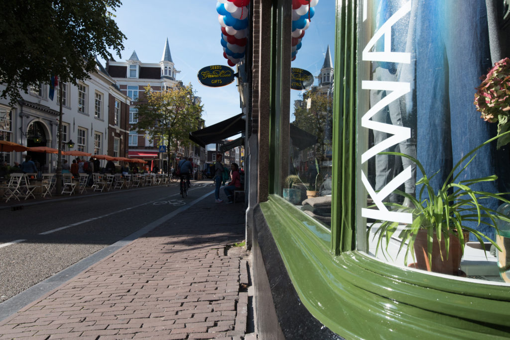 Uiteindelijk komt een frisse look de verkoop natuurlijk alleen maar ten goede. Door de kleur van de winkelpui te veranderen van het donkere grachtengroen naar een lichte, authentieke kleur groen, valt dit pand weer op tussen de aangrenzende huizen. Bovendien sluit de kleur nu mooi aan bij de afbeeldingen hoger op de gevel. Het huis vormt weer een eenheid.