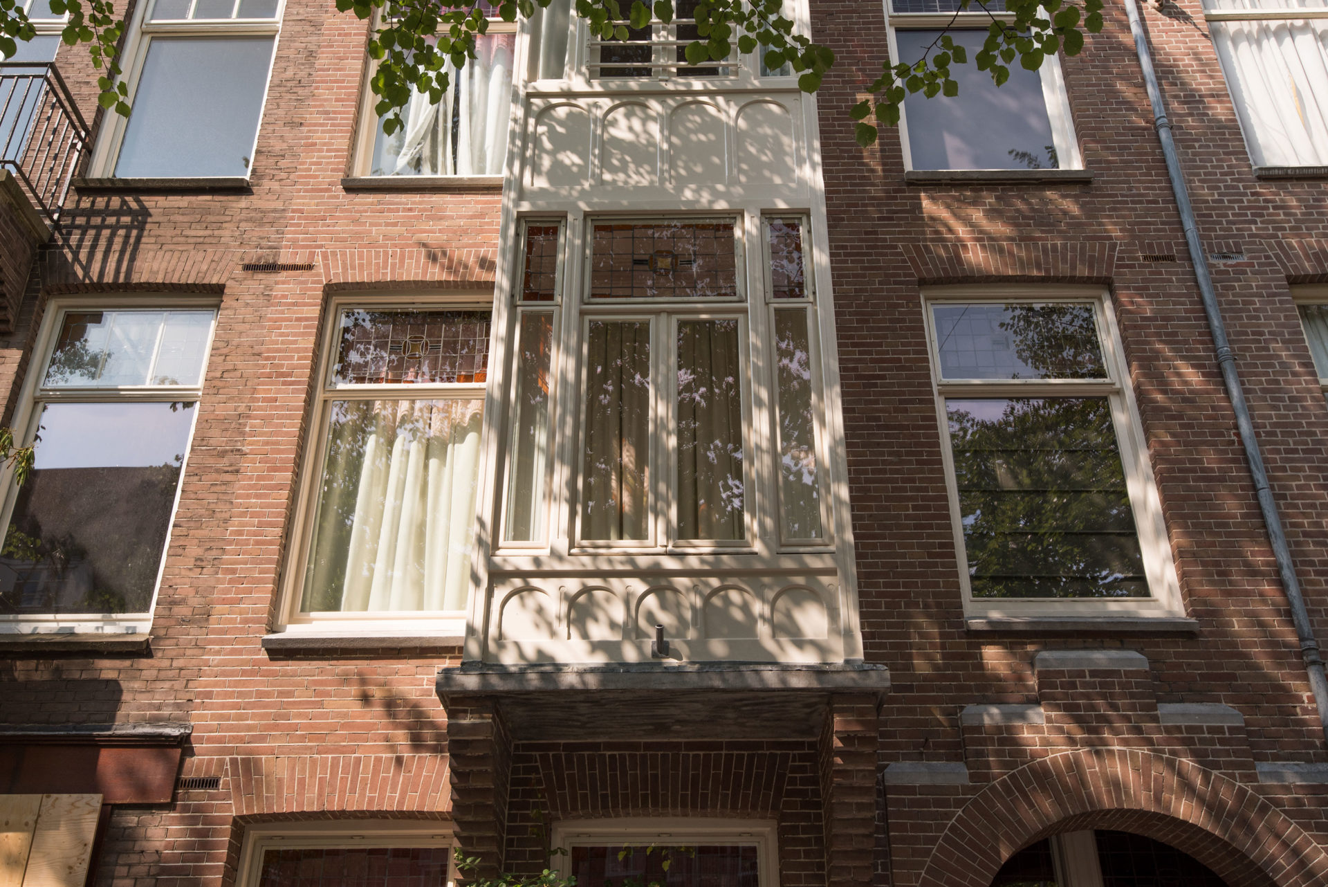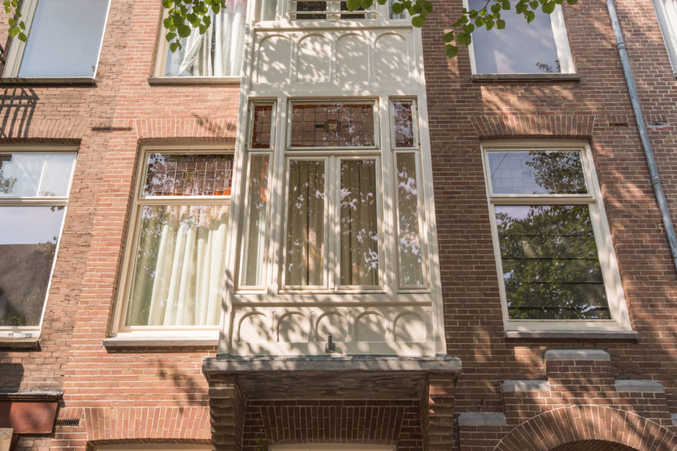 Dit huis heeft een mooie erker die de hele uitstraling van het huis bepaalt. Omdat het zo’n opvallend onderdeel is, kan de uitwerking twee kanten op gaan. Het haalt het huis omhoog of naar beneden. Dankzij aandacht en vakmanschap, is deze erker weer het bescheiden spektakelstuk van het huis. Schilderwerk is bijna als componeren; het gaat erom dat we de juiste toon raken.
